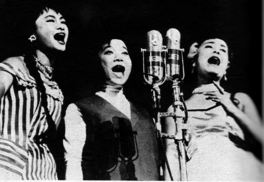 >何度も見たことがある写真ですが、いつ見てもいい写真ですね。今の歌手のようにマイクに口をやたら近づけて歌うのではなくマイクの質も違いますが)とにかく口を大きくあけて三人とも大きなすばらしい声で歌ったものです。(あまり得意ではありませんが、アメリカの大歌手、バーブラもでかいけど)